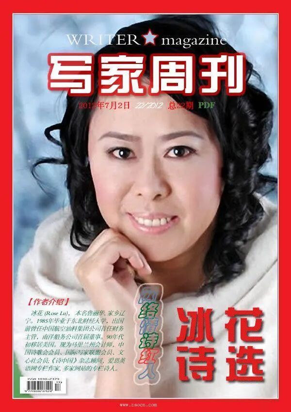 本期特别推荐的是以情诗而蜚声和享誉海内外的诗人冰花。对她的诗可谓是好评如潮。“讴歌生命之爱和情感之美,是冰花诗作的核心意向。作家以非常出色的诗句,营造出一个又一个充满活力的美妙境界,把女性特有的温柔、温暖和爱的情怀,用她自已特有的情绪方式、语言方式和节奏方式,酣畅通透地传达到读者的心灵深处。赤子般的热情和真诚,令诗人在创作中自觉地、难能可贵地实践着国学大师王国维对纳兰性德的称颂:“以自然之眼观物,以自然之舌言情”。多年來,诗坛已少见冰花这种震颤灵魂的童贞般的纯洁与坦率。作者跨文化的诗歌创作,必将受到不同民族,不同肤色,不同语种读者的共同喜爱”(摘自林楠评语)。
