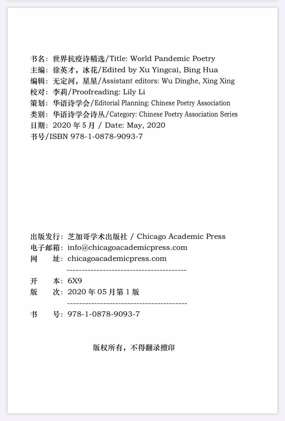 “华诗会诗丛”书讯001期 《世界抗疫诗精选》 (徐英才、冰花主编)隆重出版